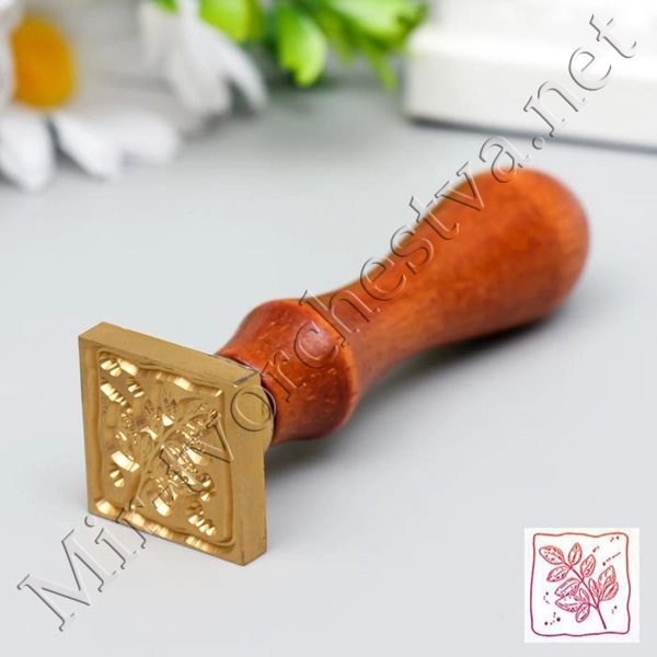 Печать для сургуча с деревянной ручкой "Веточка с листьями" 9х2,5х2,5 см 5278920