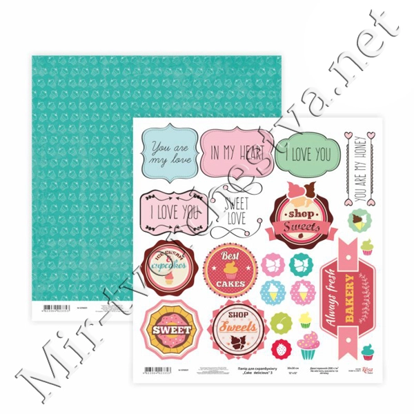 Бумага для скрапбукинга «Cake delicious» 1, двусторонняя, 30х30см, 200г/м2, ROSA TALENT