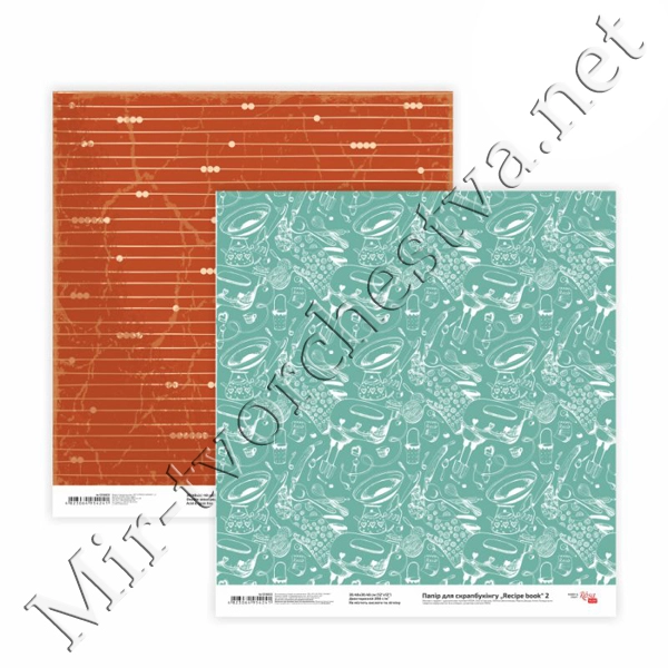 Бумага для скрапбукинга„Recipe book“ 2, двусторонняя, 30,48х30,48см, 200г/м2, ROSA TALENT