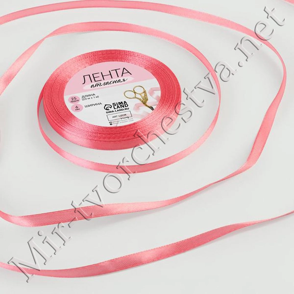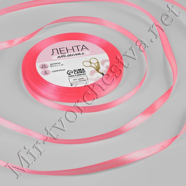 Лента атласная, 6мм, цвет Насыщенный розовый №05