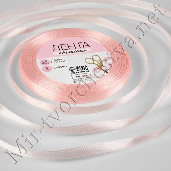 Лента атласная, 6ммx23, цвет Пастельно-розовый №43