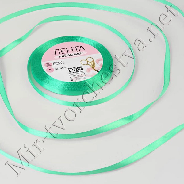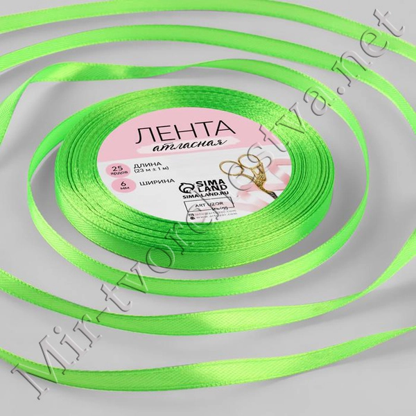 Лента атласная, 6мм, цвет Весенне-зелёный №52