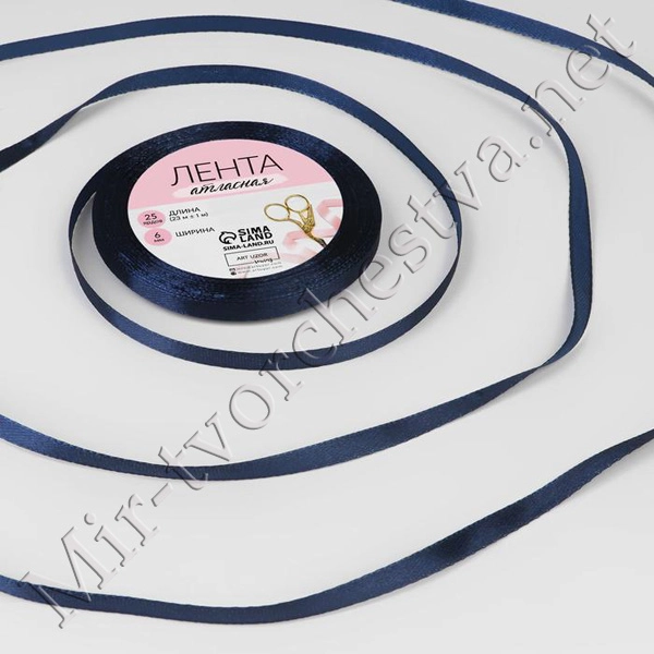 Лента атласная, 6ммx23, цвет Сапфировый №81