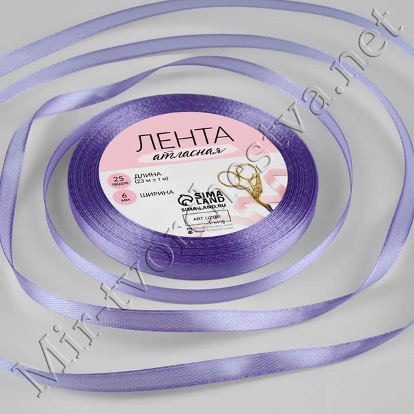 Лента атласная, 6ммx23, цвет тёплый фиолетовый №46