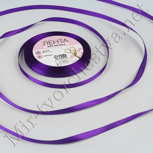 Лента атласная, 6мм, цвет Фиолетовый №46