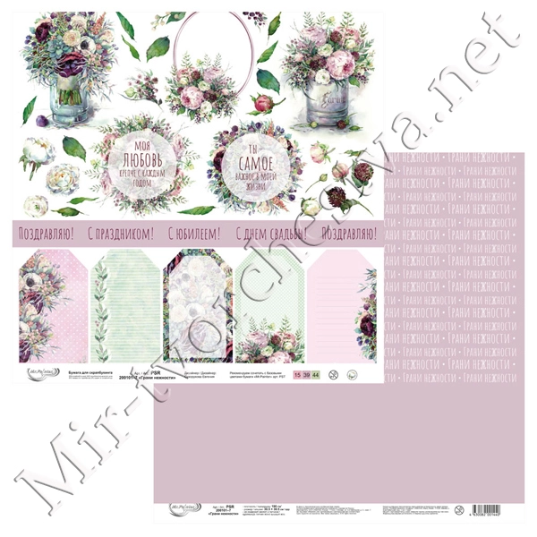 Бумага для скрапбукинга "Грани нежности" 7, 190 г/кв.м 30.5x30.5 см, Mr. Painter