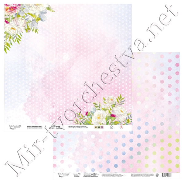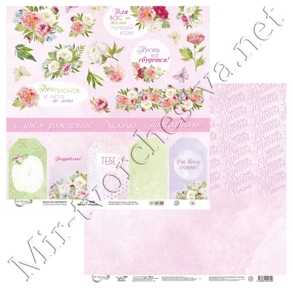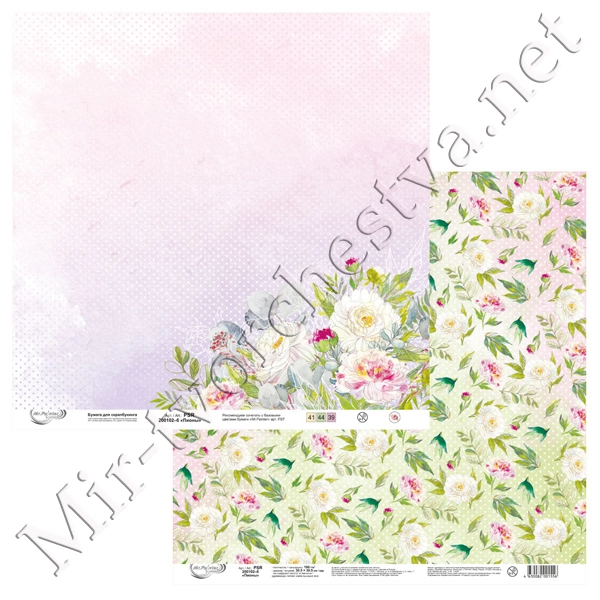 Бумага для скрапбукинга "Пионы" 5, 190 г/кв.м 30.5x30.5 см, Mr. Painter