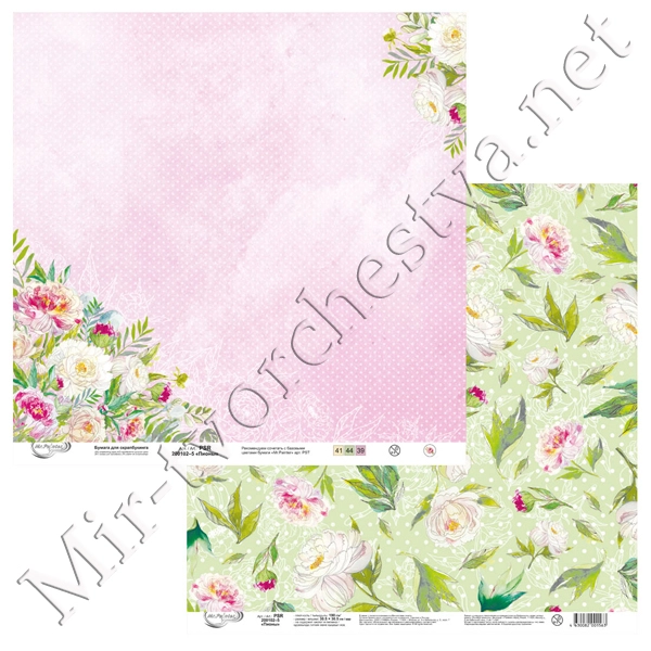 Бумага для скрапбукинга "Пионы" 4, 190 г/кв.м 30.5x30.5 см, Mr. Painter