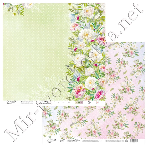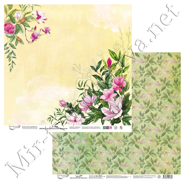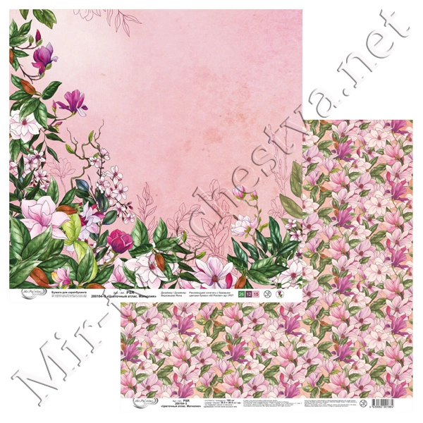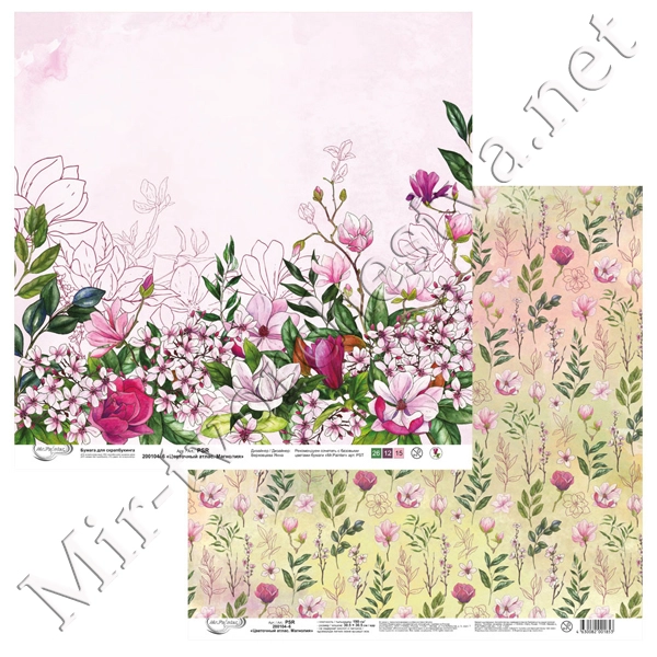 Бумага для скрапбукинга "Цветочный атлас. Магнолия" 2, 190 г/кв.м 30.5x30.5 см, Mr. Painter