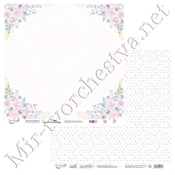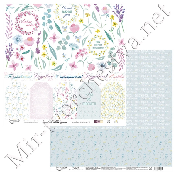 Бумага для скрапбукинга "Для открыток. Цветочная" 4, 190 г/кв.м 30.5x30.5 см, Mr. Painter