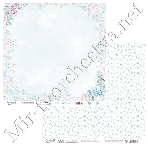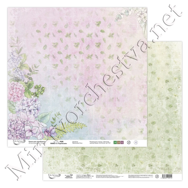 Бумага для скрапбукинга "Гортензия" 4, 190 г/кв.м 30.5x30.5 см, Mr. Painter