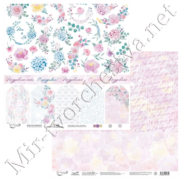 Бумага для скрапбукинга "Я сказала да" 1, 190 г/кв.м 30.5x30.5 см, Mr. Painter