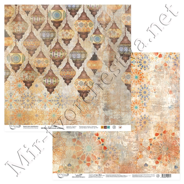 Бумага для скрапбукинга "Восточный экспресс" 2, 190 г/кв.м 30.5x30.5 см, Mr. Painter
