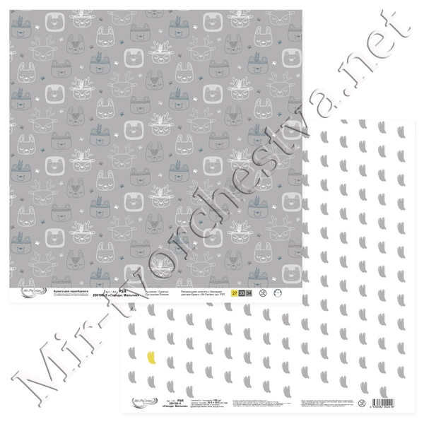 Бумага для скрапбукинга "Сканди. Мальчик" 4, 190 г/кв.м 30.5x30.5 см, Mr. Painter