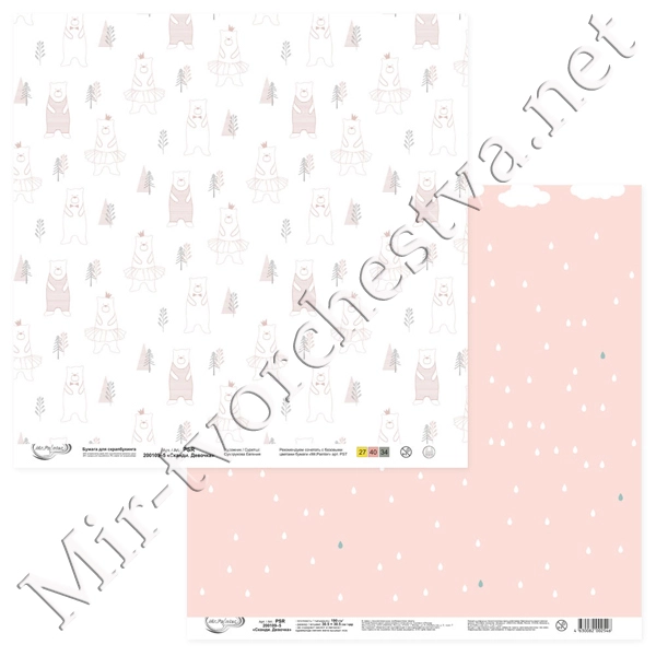 Бумага для скрапбукинга "Сканди. Девочка" 5, 190 г/кв.м 30.5x30.5 см, Mr. Painter