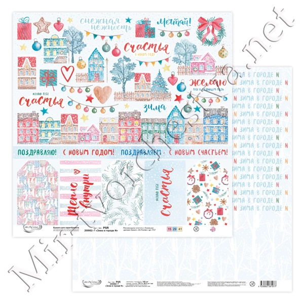 Бумага для скрапбукинга "Зима в городе N" 7, 190 г/кв.м 30.5x30.5 см, Mr. Painter