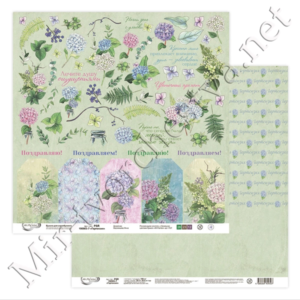 Бумага для скрапбукинга "Гортензия" 7, 190 г/кв.м 30.5x30.5 см, Mr. Painter