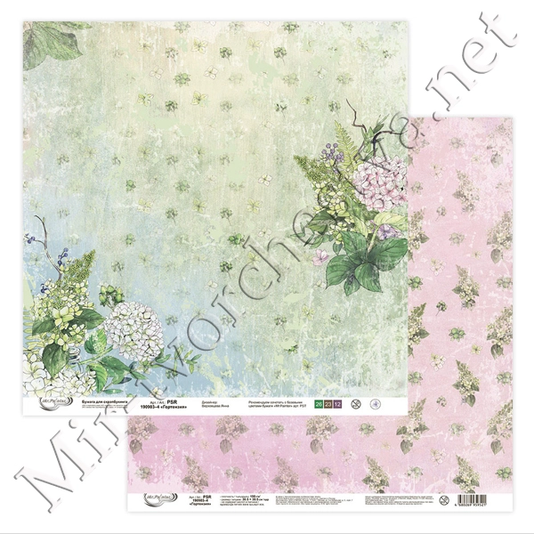 Бумага для скрапбукинга "Гортензия" 3, 190 г/кв.м 30.5x30.5 см, Mr. Painter