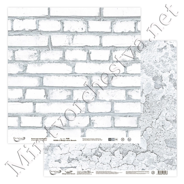 Бумага для скрапбукинга "Вокруг меня. Белый" 2, 190 г/кв.м 30.5x30.5 см, Mr. Painter