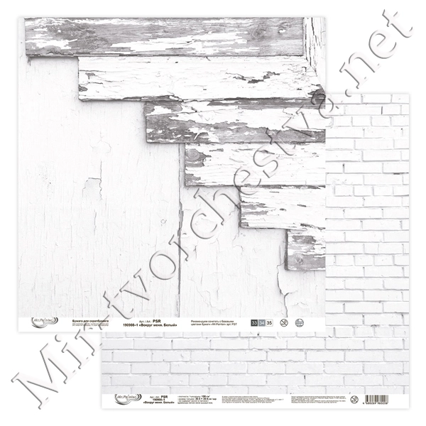 Бумага для скрапбукинга "Вокруг меня. Белый" 1, 190 г/кв.м 30.5x30.5 см, Mr. Painter