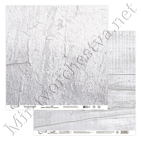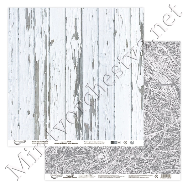 Бумага для скрапбукинга "Вокруг меня. Белый" 4, 190 г/кв.м 30.5x30.5 см, Mr. Painter