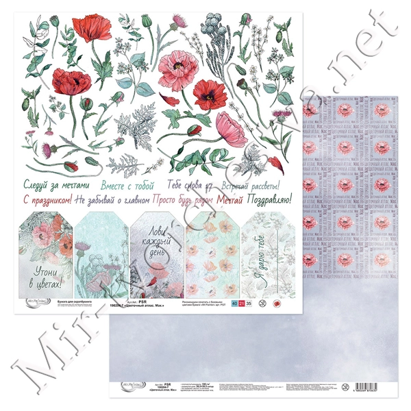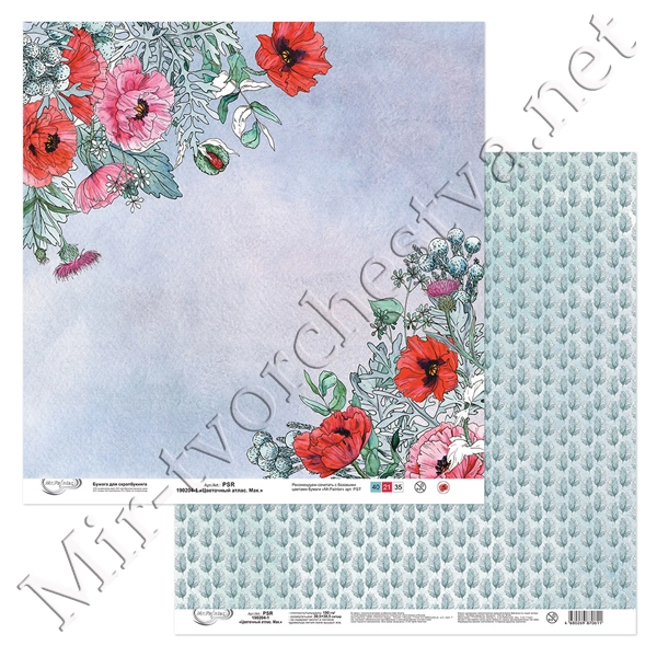 Бумага для скрапбукинга "Цветочный атлас. Мак." 1, 190 г/кв.м 30.5x30.5 см, Mr. Painter