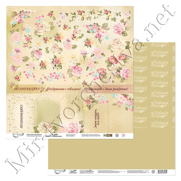 Бумага для скрапбукинга "Чайная роза" 4, 190 г/кв.м 30.5x30.5 см, Mr. Painter