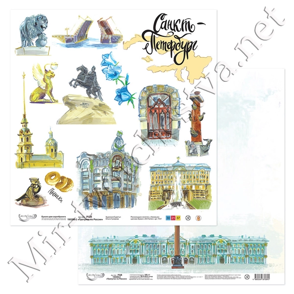 Бумага для скрапбукинга "Прогулки по России" 2, 190 г/кв.м 30.5x30.5 см, Mr. Painter