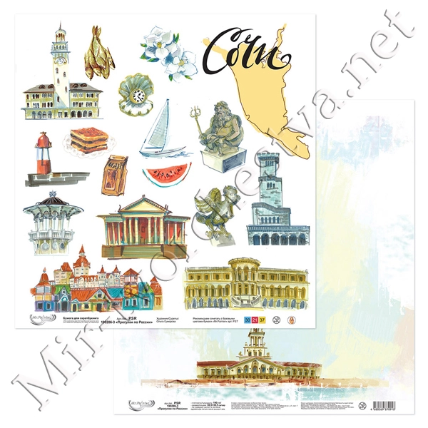 Бумага для скрапбукинга "Прогулки по России" 3, 190 г/кв.м 30.5x30.5 см, Mr. Painter