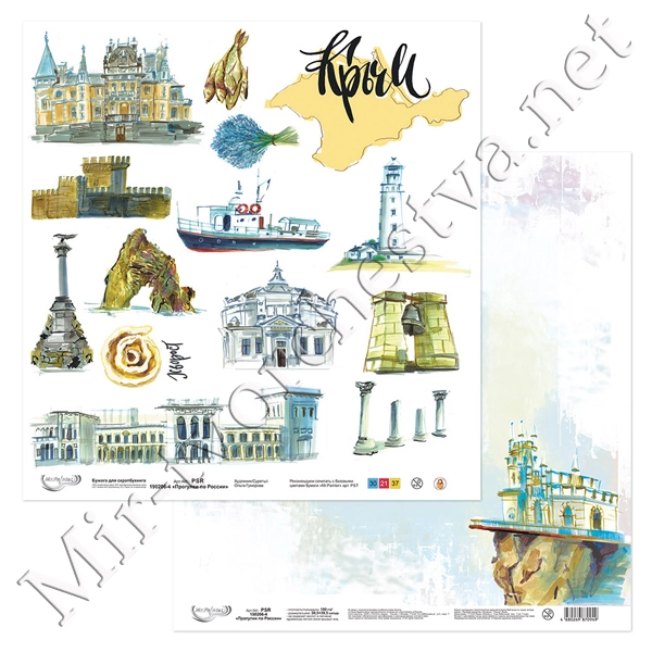 Бумага для скрапбукинга "Прогулки по России" 6, 190 г/кв.м 30.5x30.5 см, Mr. Painter