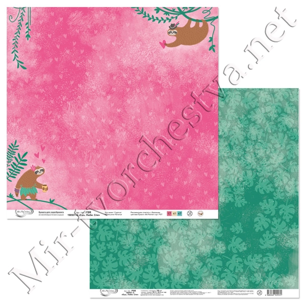 Бумага для скрапбукинга "Ешь. Люби. Спи" 5, 190 г/кв.м 30.5x30.5 см, Mr. Painter