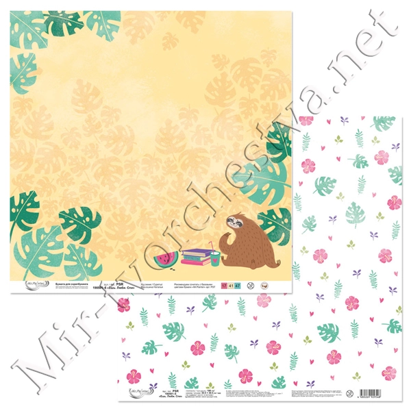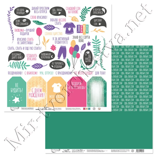 Бумага для скрапбукинга "Ешь. Люби. Спи" 4, 190 г/кв.м 30.5x30.5 см, Mr. Painter