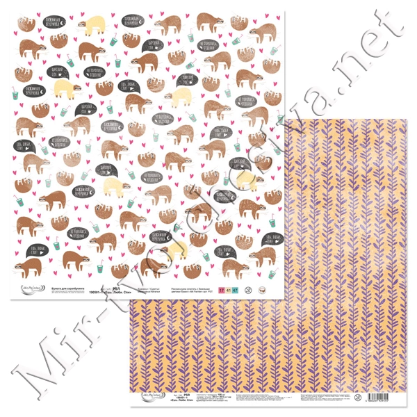 Бумага для скрапбукинга "Ешь. Люби. Спи" 2, 190 г/кв.м 30.5x30.5 см, Mr. Painter