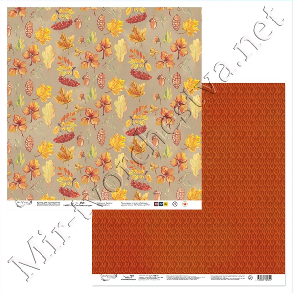 Бумага для скрапбукинга "Сны листопада" 5, 190 г/кв.м 30.5x30.5 см, Mr. Painter