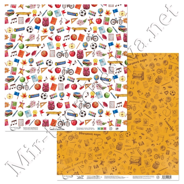 Бумага для скрапбукинга "Школьная" 2, 190 г/кв.м 30.5x30.5 см, Mr. Painter