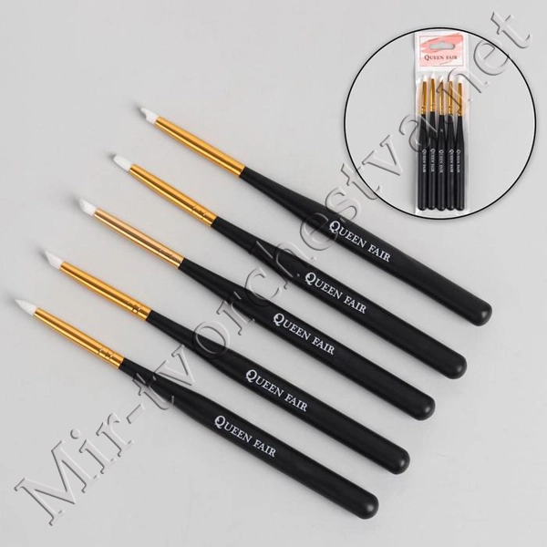 Кисти силиконовые для наращивания и дизайна ногтей, 5шт., 13см, цвет Чёрный