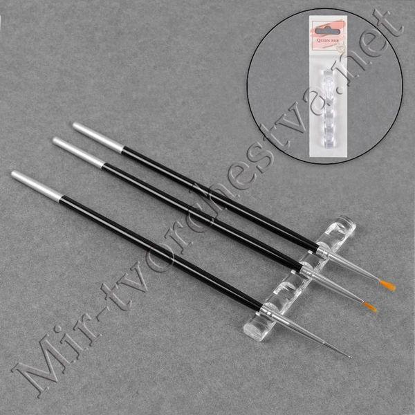 Кисти силиконовые для дизайна ногтей, 3шт., 18см, цвет Чёрный