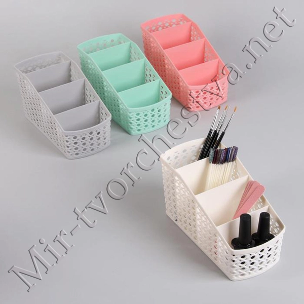 Подставка для хранения маникюрных/косметических принадлежностей, 4 ячейки, 19x10.5x8см, цвет МИКС
