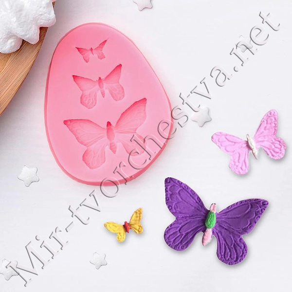 Молд силиконовый, "Бабочки" 3 предмета 0.8х7x5.5см, (5180342/1166851)