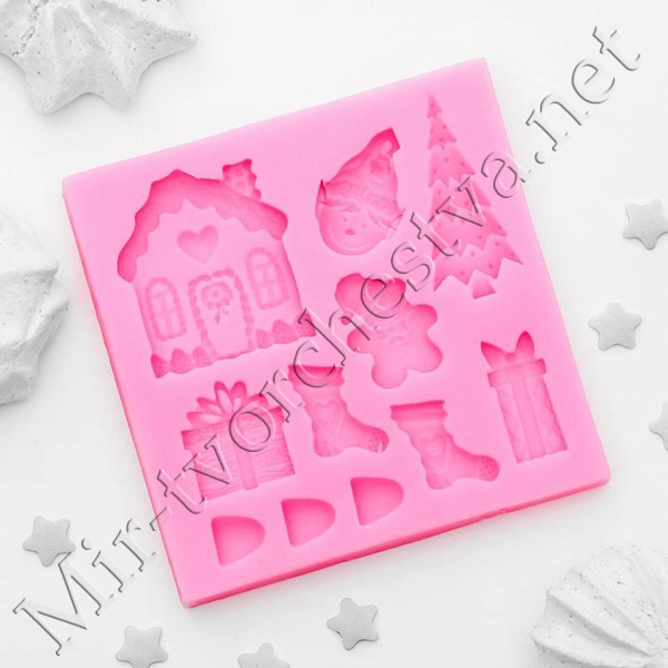 Молд силиконовый, 8,3х8,3х0,7 см "Новогодние элементы" 3628337