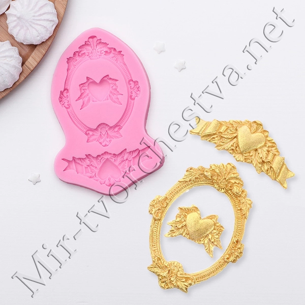 Молд силиконовый, «Сердца, рамка, лепнина», 12,5x8,2 см