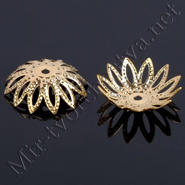 Шапочки для бусин (набор 10шт) СМ-041, 5х12 мм, цвет золото