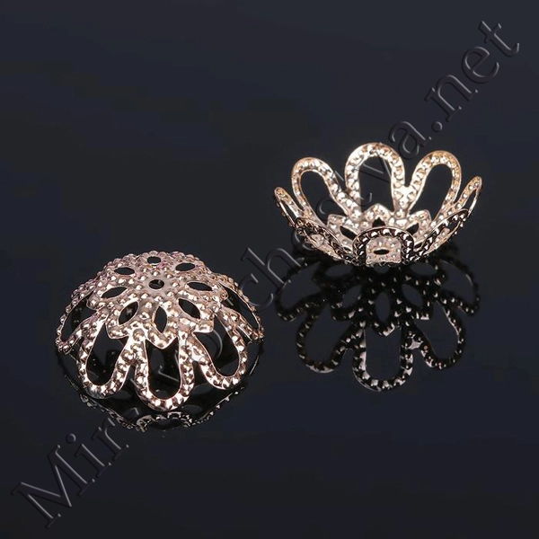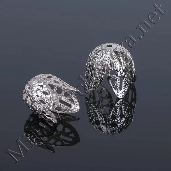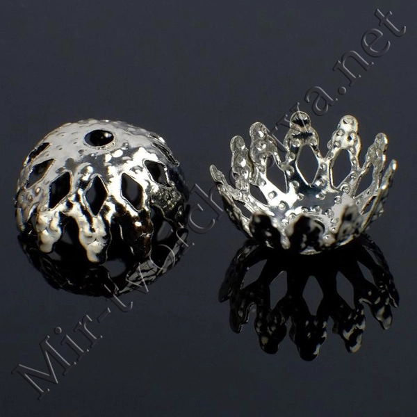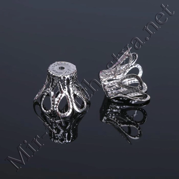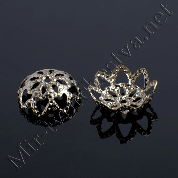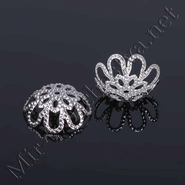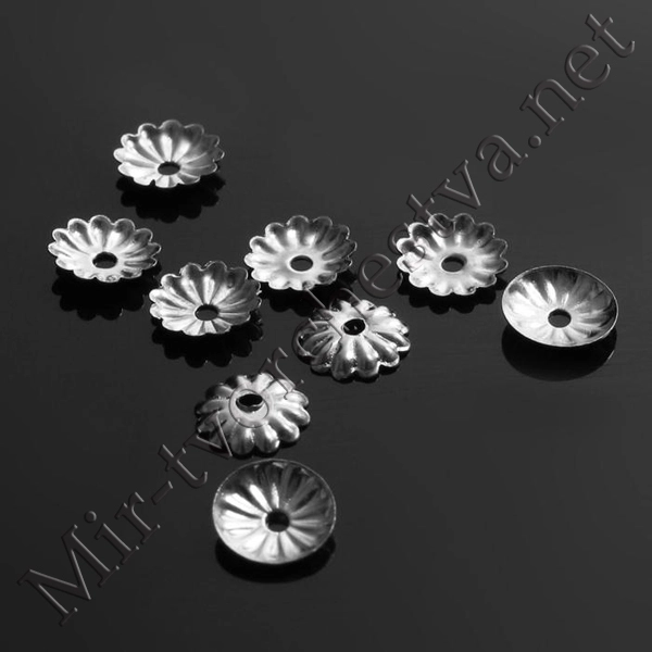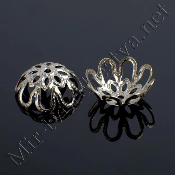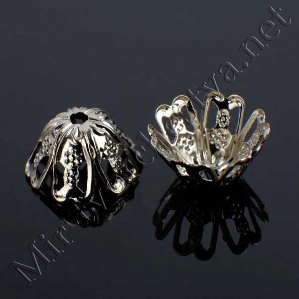 Шапочки для бусин (набор 10шт.), СМ-051-1, 16х15мм, цвет серебро