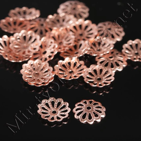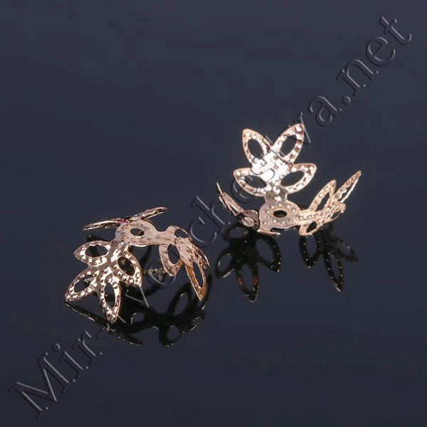 Шапочки для бусин (набор 40шт.), СМ-045, 6х10мм, цвет меди