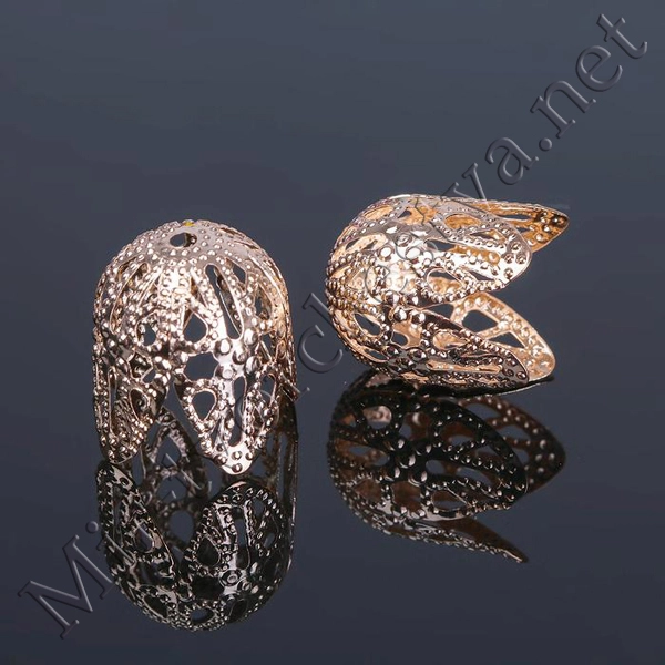 Шапочки для бусин (набор 50шт.), СМ-021, 7,3х18мм, цвет золото