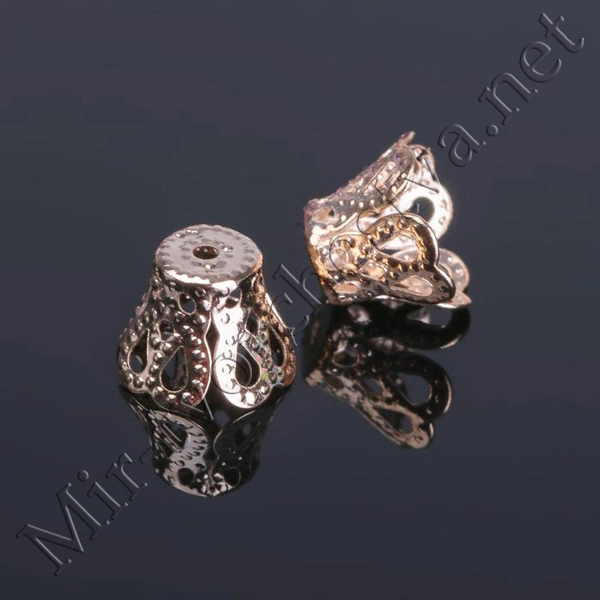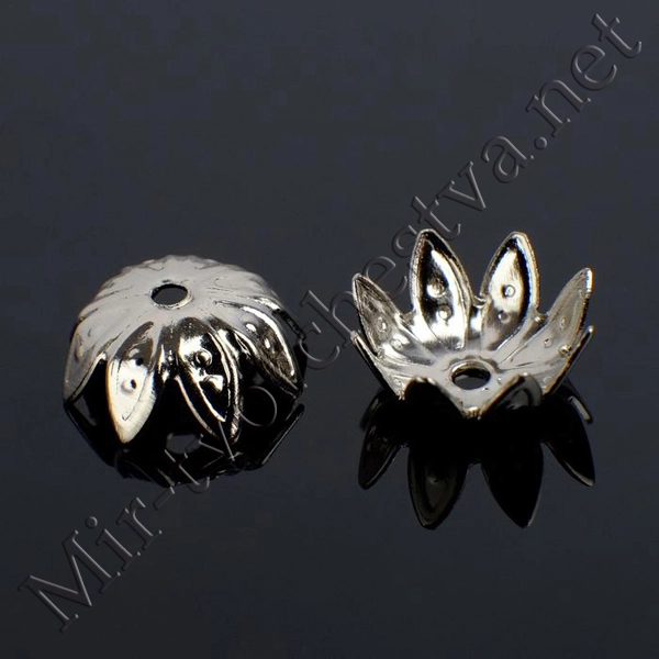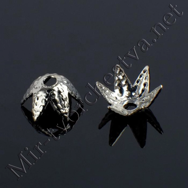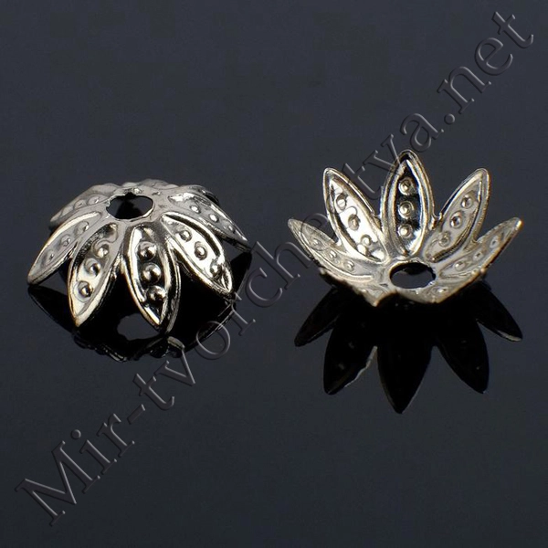 Шапочки для бусин (набор 10шт.), СМ-093, 11,5х15мм, цвет серебро