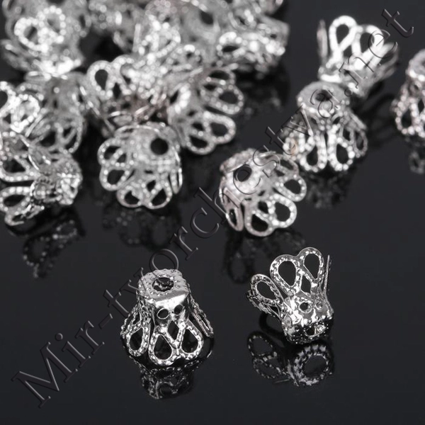 Шапочки для бусин (набор 50шт), СМ-091, 8х10 мм, цвет серебро
