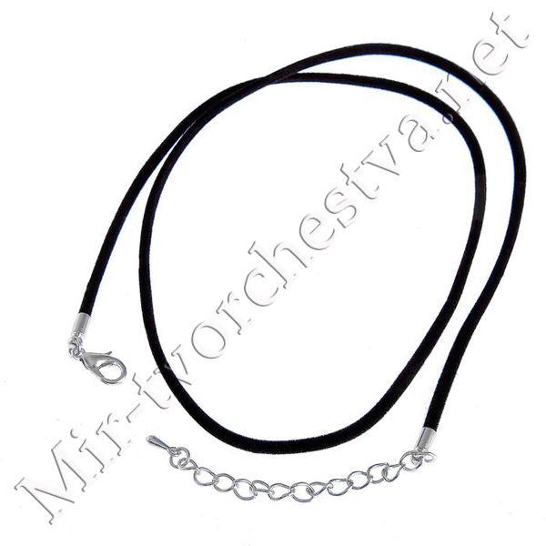 Шнурок бархатный с замком, 45см+удлинитель, цвет Чёрный