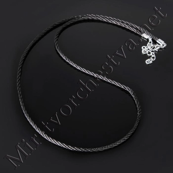 Шнурок искусственная кожа d=3мм, L=45см, косичка, цвет Черный