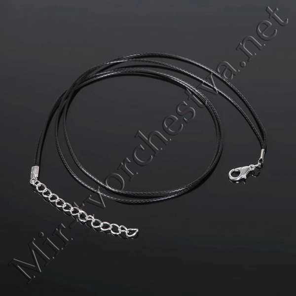 Шнурок вощёный, 43 см с удлинителем, JF-010, цвет Чёрный